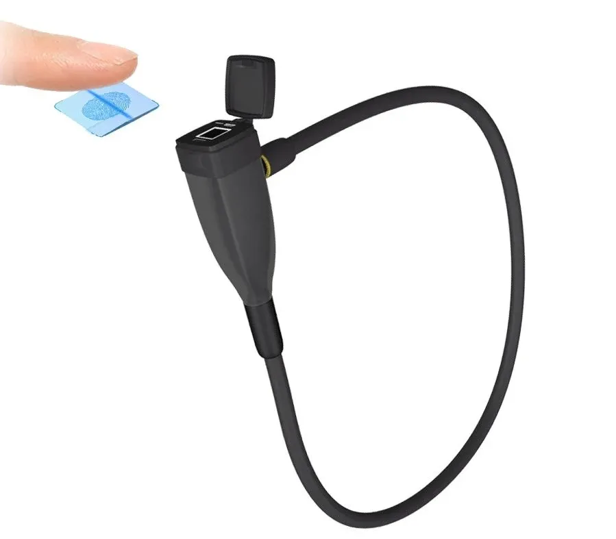 ● SMART bike lock with fingerprint, with memory up to 20 different fingerprints. Portable intelligent lock with biometric fingerprint sensor. It has low power consumption, long-lasting performance.